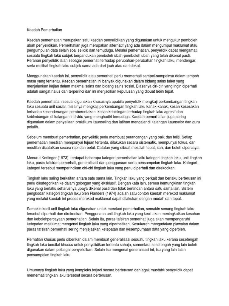 Maksud Kaedah Pemerhatian Dalam English